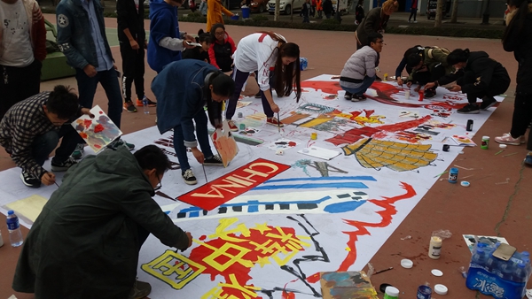 大学生用画笔欢庆十九大