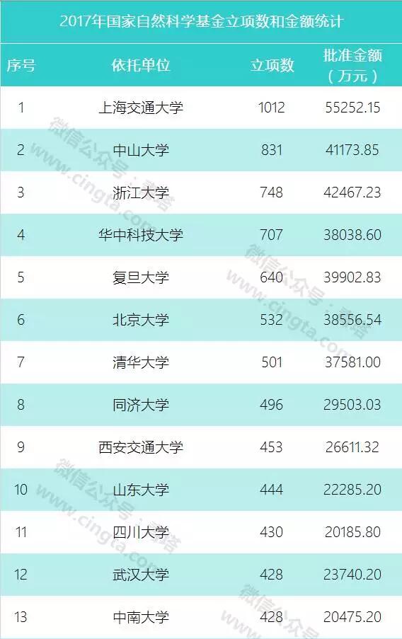 8月17日,2017年国家自然科学基金评审结果正式揭晓。国家自然科学基金委发布的公告显示,今年资助面上项目18136项、重点项目667项、重大项目2项、重点国际(地区)合作研究项目107项、青年科学基金项目17523项、优秀青年科学基金项目399项、创新研究群体项目38项、海外及港澳学者合作研究基金项目142项、地区科学基金项目3017项、部分联合基金项目(NSAF联合基金、天文联合基金、民航联合研究基金和钢铁联合研究基金)151项、国家重大科研仪器研制项目(自由申请)83项,合计40265项。