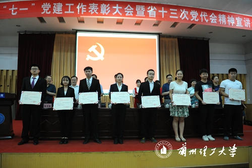 报告厅内气氛热烈而庄重。在鲜红的党旗下,新党员入党宣誓、老党员重温入党誓词。在庄严的国歌奏唱后,学校党委常委、副校长俞树荣宣读《关于表彰2016-2017年度先进基层党组织、优秀党务工作者和优秀共产党员的决定》。文件指出,经基层党组织推荐,学校评审,学校党委常委会研究,决定授予能动学院党委等7个二级党组织、土木学院教工第一党支部等15个党支部“先进基层党组织”称号,授予土木学院教工第一党支部等5个党支部“标兵党支部”称号,授予机关第二党支部等10个党支部“示范性党支部”称号,授予王庆明等10名同志“优秀党务工作者”称号,授予臧树俊等105名同志“优秀共产党员”称号。学校希望受到表彰的单位和个人再接再厉,再创佳绩。号召全校各基层党组织和广大党员向先进学习,坚持“两学一做”常态化制度化,团结奋斗,争创一流,为创建高水平教学研究型大学做出新的更大贡献。