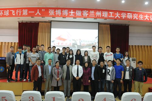 5月8日下午,“中国环球飞行第一人”张博博士做客兰州理工大学研究生大讲坛,以“环飞梦、中国梦”为题做报告。学校副校长曾华辉出席报告会并与张博亲切交谈。研究生院院长杜雪岩、兰州大学林和教授,甘肃德华生物股份有限公司董事长陈亚民、研究生院相关人员以及研究生代表300余人参加了报告会。报告会由党委研究生工作部周琦部长主持。
