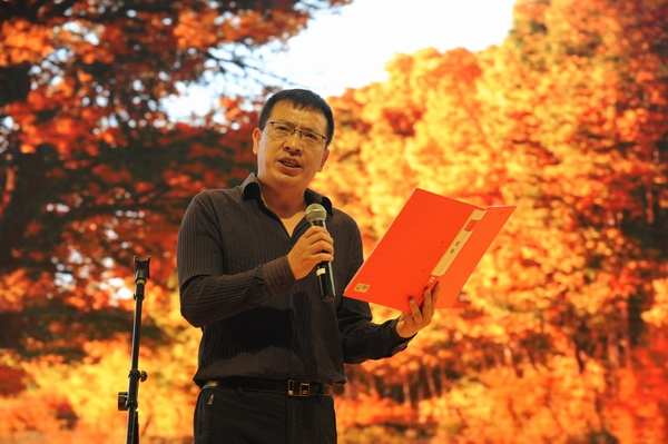 在诗歌朗诵品鉴会开始之前,丁虎生致辞,对嘉宾、朗诵艺术家、校友的到来表示热烈的欢迎,感谢校友的反哺情深。他希望同学们珍惜机会,感受经典,陶冶情操,提高修养。