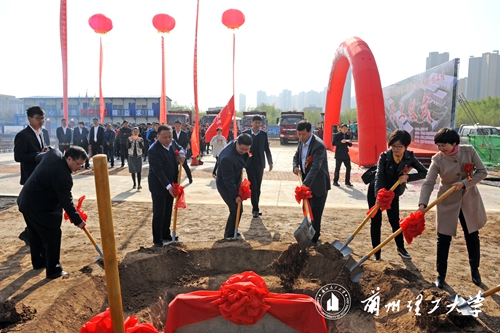 出席仪式的领导和来宾共同为机电学院教学实验楼奠基。