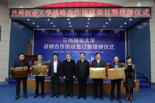 2016年12月29日上午,兰州创业大学战略合作协议签订及授牌仪式在兰州大学逸夫科学馆举行。兰州创业大学挂牌成立,为兰州市搭建了一个服务创新创业的新平台,点燃了青年大学生的创业激情,开创了校地合作的新局面。