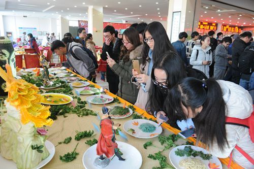 12月8日上午,兰州理工大学西校区南餐厅饕餮美食荟萃,一字排开的精美食品引得众多师生络绎不绝,争相品尝。上午十时三十分,学校副校长李仁年宣布,兰州理工大学第五届校园饮食文化节开幕。一时间,煎炒焖炸烹佳肴美味,锅碗瓢盆奏和谐乐章。 刚刚听课结束的学校党委书记夏天东也欣然来到现场,观摩厨艺大比拼和精美菜品展示活动,与学生亲切交流,了解大家对饮食工作的反映和建议。在接受大学生记者的采访时,他说,学校历来高度重视饮食安全和服务质量,采取了一系列措施加强食堂基础设施建设和后勤服务保障,就是要让师生分享学校改革发展的成果,不断改进食堂服务质量,促进师生饮食健康。他希望学生多提宝贵意见,共同提高后勤服务质量,推进和谐校园建设。 本次文化节主题是倡导文明健康饮食、提升饮食服务质量。活动内容丰富,实惠多多。除了厨艺展示、食材雕刻、拼盘展示等活动,文化节期间还推出所有餐厅菜品八五折优惠、精美食品品尝、牛肉面和大锅菜比武评选以及回馈送券等活动,旨在引导学生积极参与健康文明饮食文化活动,关注和支持食品卫生安全及饮食质量。 学校历来重视学生饮食安全和质量。去年暑假,学校投入900多万元对两校区13000㎡的学生食堂进行了煤改气改造等“明厨亮灶”基础设施建设,为师生餐饮生活带来了新气象。今年,学校后勤保障体制实行“小机关、多实体、大服务”的 “一甲多乙”型管理体制,重在体现以“服务为核心、以师生为根本”的后勤管理改革创新,在公益性投入与市场化运营相结合的运行机制下,最大程度让后勤阶段性改革成果惠及师生,持续提升后勤饮食服务质量。 举办饮食文化节,意在进一步宣传健康饮食文化,倡导文明就餐,培养学生的健康膳食理念,倡议广大师生关注饮食服务,为饮食服务工作建言献策,促进饮食服务水平和校园文化建设。 今年的饮食文化节,得到了七里河区食品药品监督管理局与中国移动兰州分公司的大力支持和帮助。学校相关部门负责人也应邀参加活动。