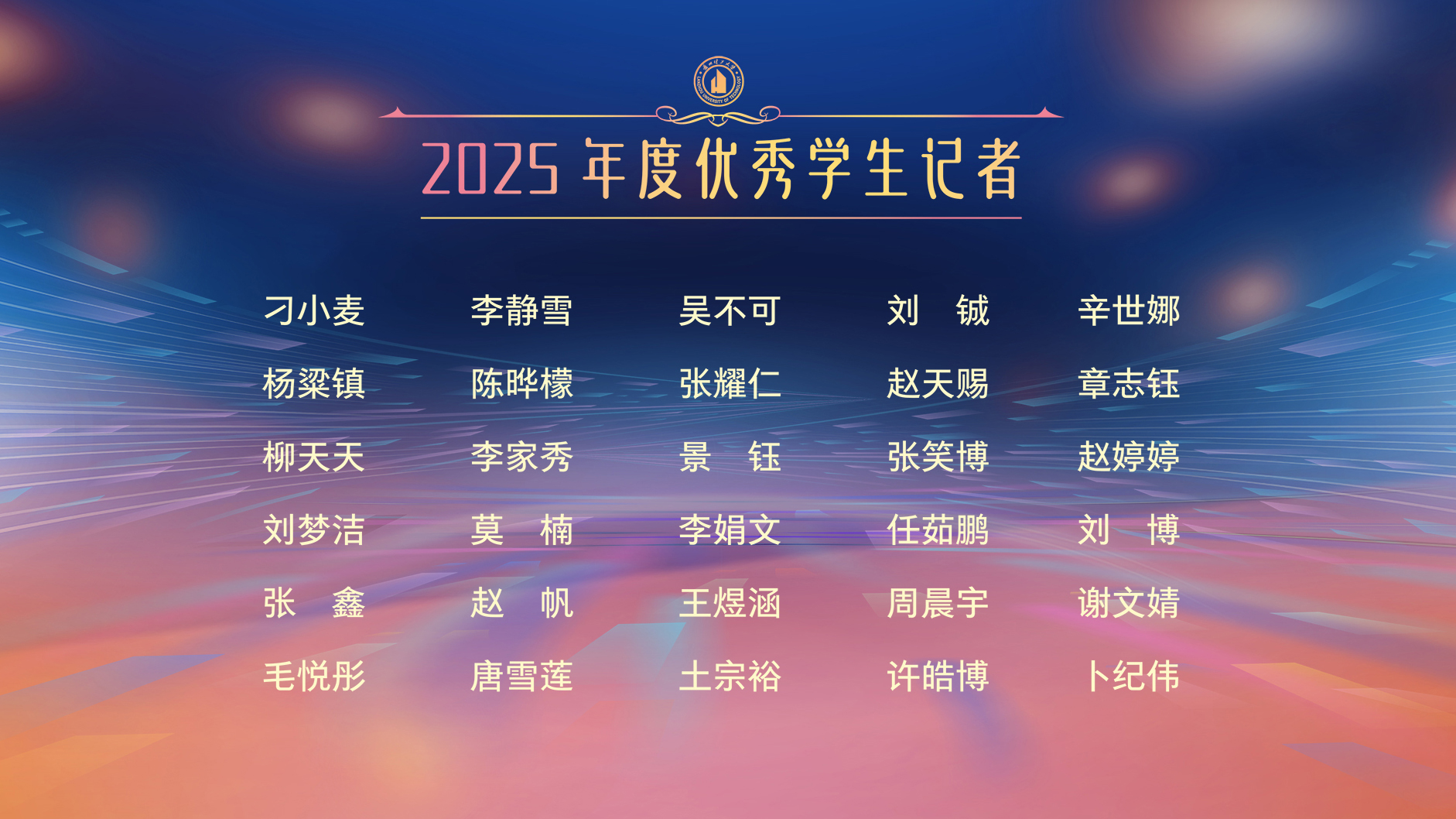 张立峰为刁小麦等荣获2025年度优秀学生记者称号的代表颁奖。